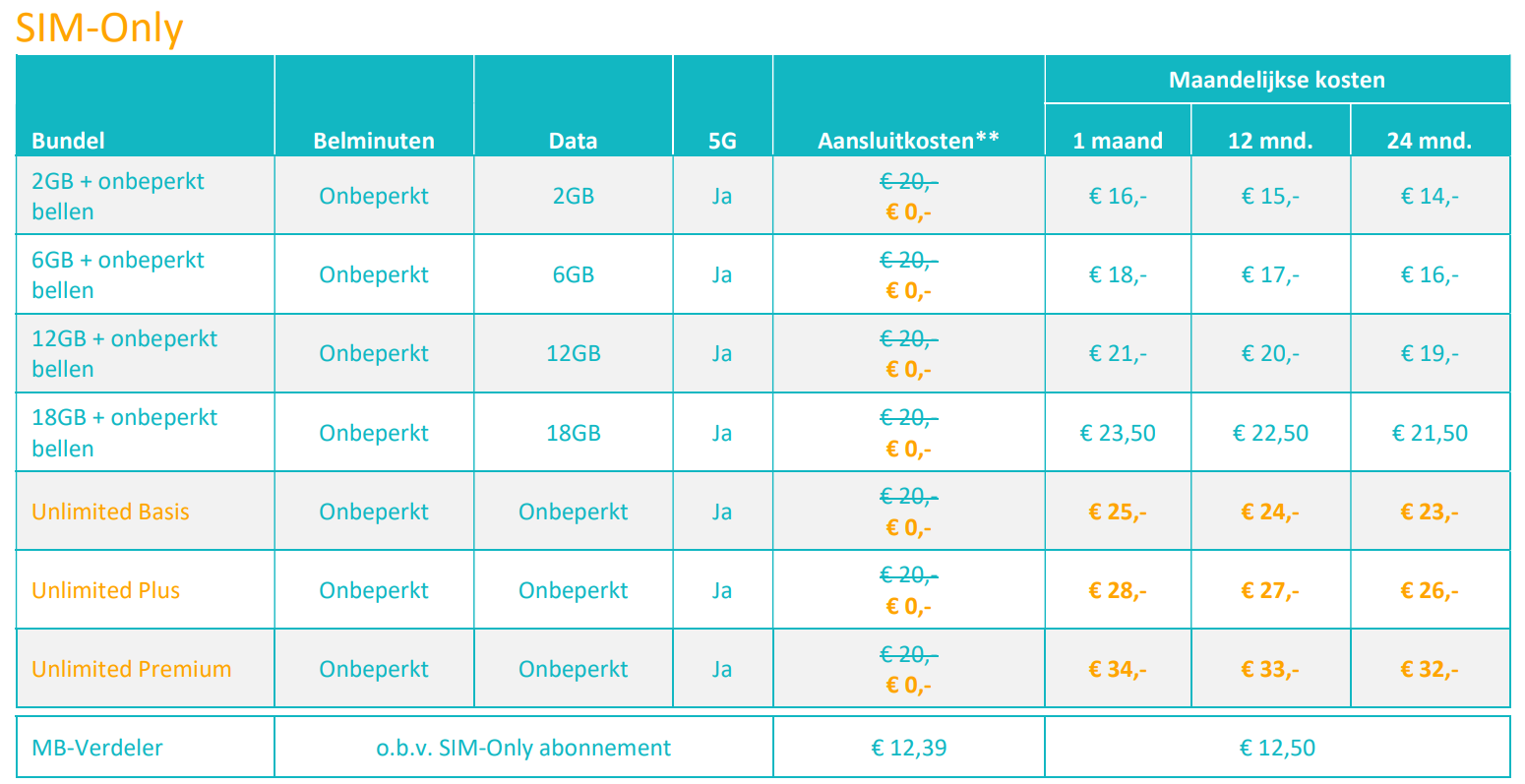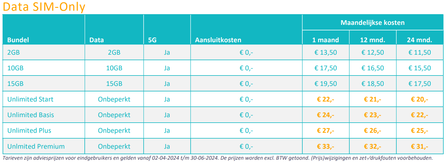Met Odido Odido Hello Business op Maat heb je de keuze uit 5 verschillende data bundels en altijd onbeperkt bellen. Het meest gekozen Odido Odido Hello Business op Maat abonnement is Odido Unlimited met onbeperkt data en onbeperkt bellen.